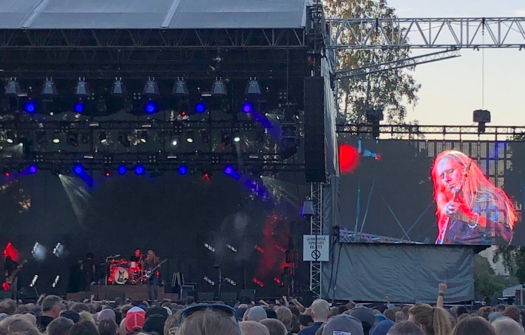 FullSizeRender-8Illan pääesiintyjä palasi vielä kahden kappaleen verran lavalle. Ensimmäisenä kuultiin The Phoenix, jonka aikana lauteille kapusi vieraana Alice in Chainsista tuttu Jerry Cantrell. Toisena encorena kuultu Love Removal Machine sai tuekseen itse alkuperäisen Sex Pistols kitaristin Steve Jonesin, joka hänkin majailee Los Angelesissa. Paikallinen tuttava kertoikin minulle, että hyvin tavallista, että Losissa lavalla saattaa piipahtaa artistia kovempia vierailijoita. Enpä olisi uskonut tässä elämässä näkeväni Steve Jonesia, mutta joskus onni on puolellani.